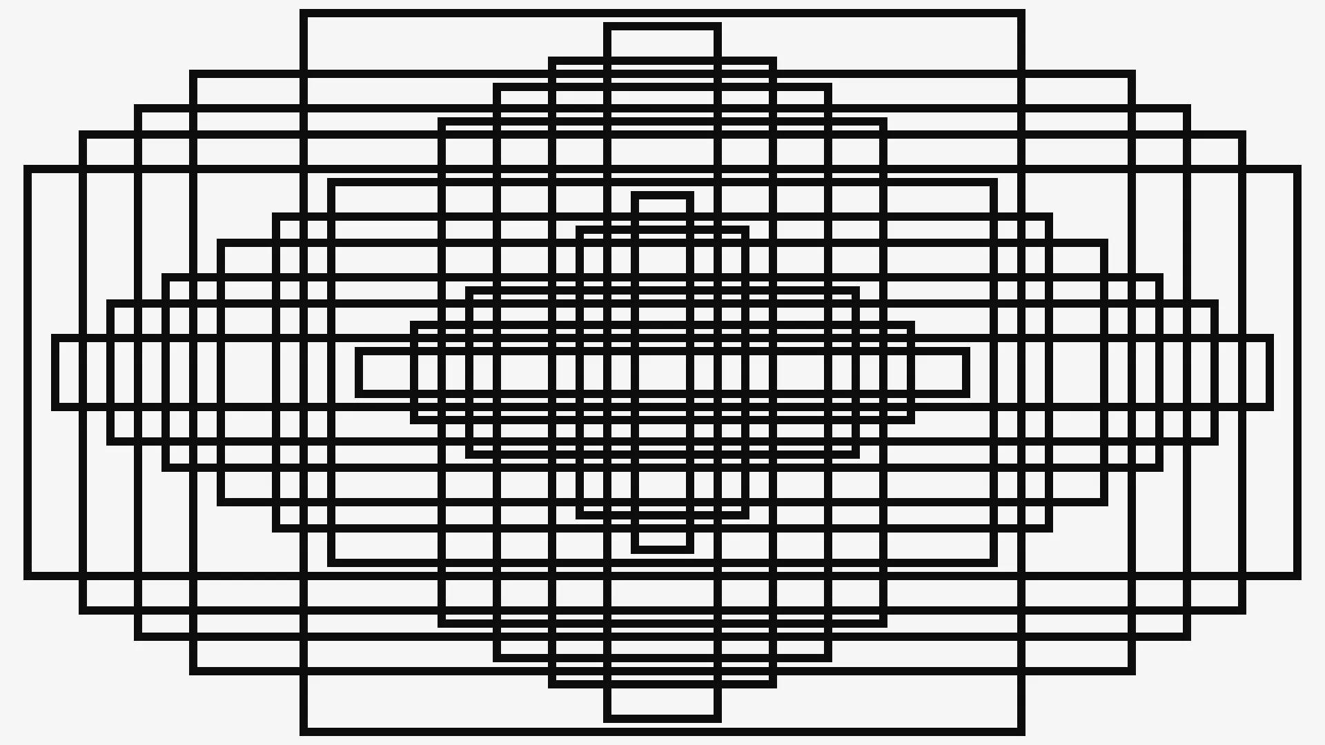 With the first version of the code, we started with the smallest rectangle and went outwards. What if we invert the process? First, draw the biggest rectangle and then go inwards. Instead of using multiplication, we calculate the width and height of a given rectangle according to the remaining space. So no two rectangles touch each other, we separate them by horizontal and vertical space.